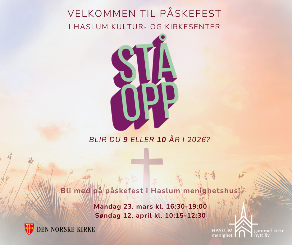 Påskefest i Haslum menighetshus . 23. mars STÅ OPP samling for 9 og 10 åringer
